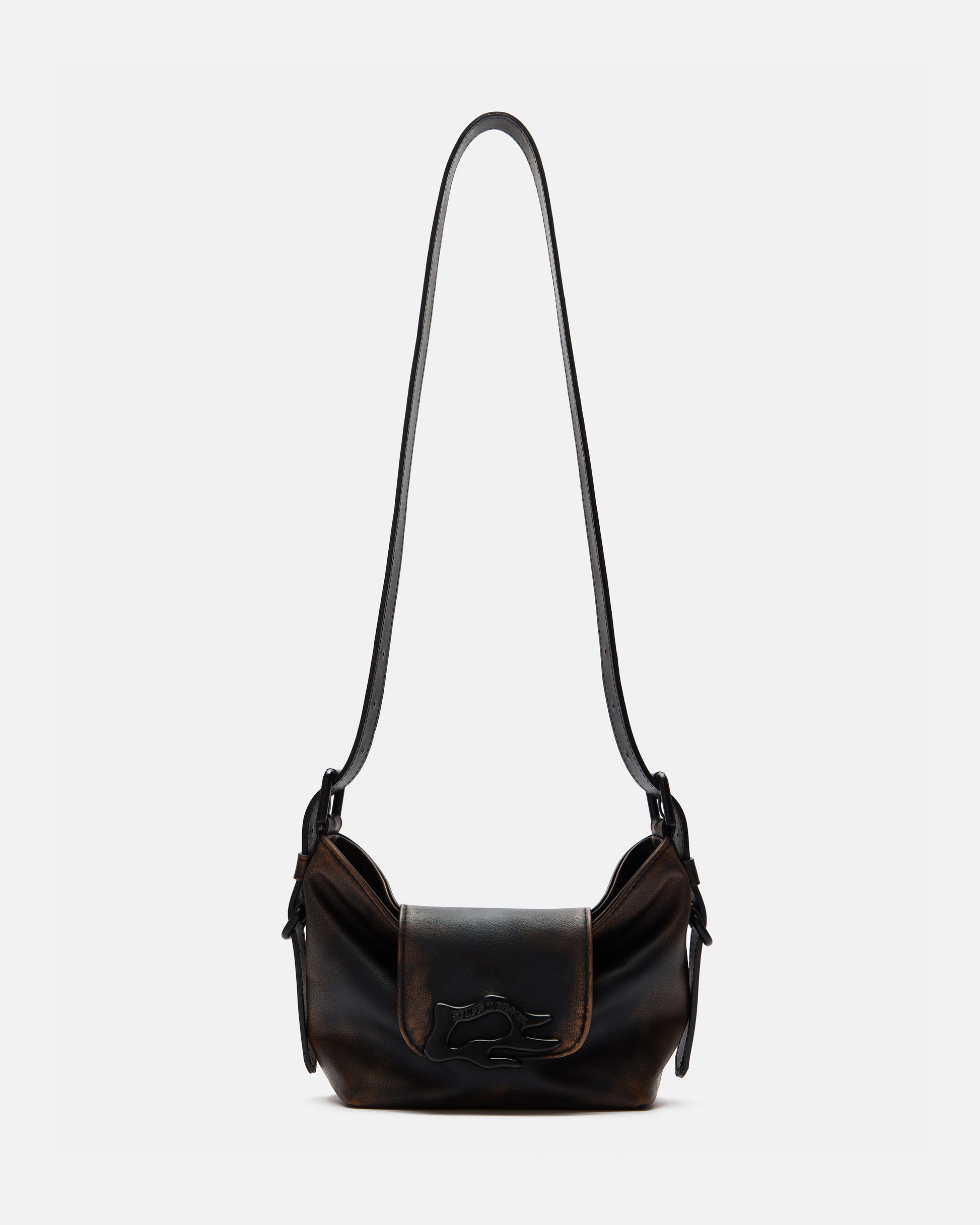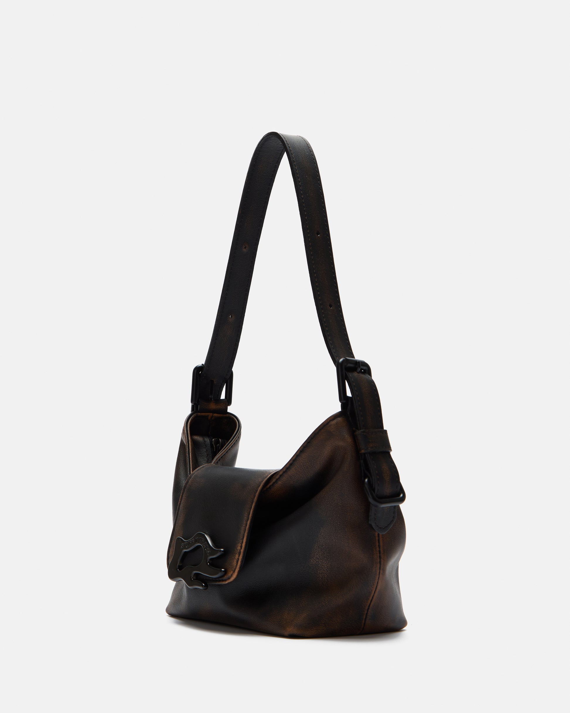 The distressed finish is done by hand and each bag is worked individually.